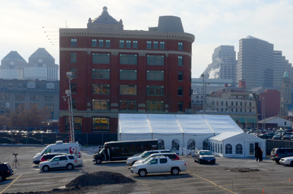 It was a carefully choreographed spectacle by Rock Gaming and Caesar’s, the latter being nothing more than the single largest casino company in the world. A heated tent was set up on the site at the corner of Court and Broadway, replete with chandeliers, decorative plantings and a bullpen platform for the multitudes of media hordes that descended downtown for the event. Caesar’s CEO Greg Loveman, an Indianapolis native, was also on hand for the festivities, along with a cadre of Caesar’s and Rock execs. As the ceremony unfolded, Rock CEO Dan Gilbert took to the stage, touching on his ardent belief in the revitalization of Midwest cities in the former “rust belt,” the arduous process of getting the project from infancy to this point, and, among other things, his apparent disdain for endless meetings and dealings with attorneys. Although tempted mightily, I resisted the urge to ask him about his rather curious attachment to comic sans font. Fortunately, the comic relief was provided by the always delightful photo op of politicians and dignitaries in ill-fitting ceremonial gold helmets (Cullen, to his credit, declined to don the helmet on his carefully coiffed cranium).