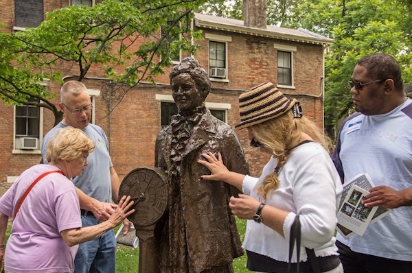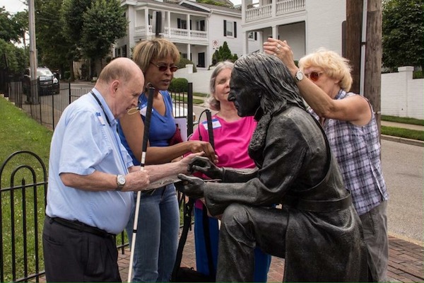 Schneider advertised the event, recruited friends and family as volunteer guides and used the $250 to rent a shuttle bus. On the day of the tour, approximately 25 people — plus some seeing-eye dogs — turned out for an up-close walking tour of various public sculptures around Covington.