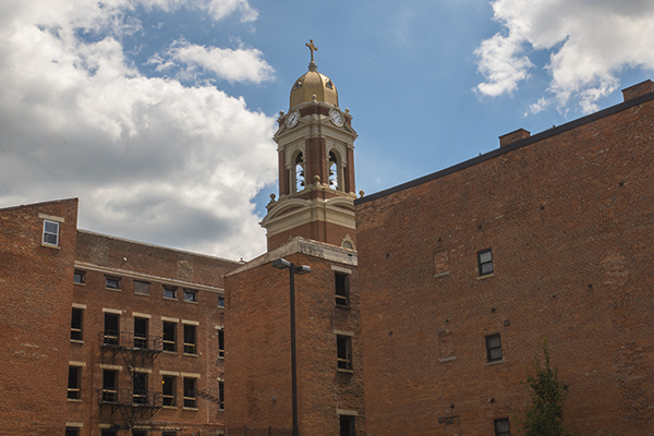 In fact, the golden dome of St. Paul’s, visible as it is from around the basin, is a natural landmark for the neighborhood, much more so than that clock tower at Liberty and Reading. A Romanesque brick structure, it features Doric pilasters set in its corners and between the arched windows. Above the low-pitched roof is a Renaissance tower capped with a cupola roof and gilded cross.