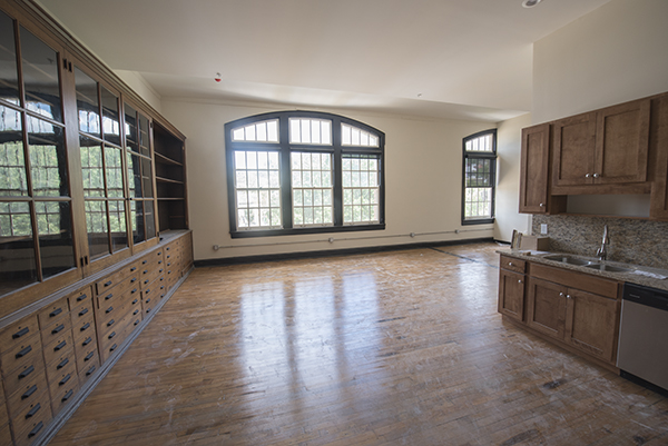 After an exhaustive construction process, this structure is finally returning to life in the form of Alumni Lofts, 142 new apartments from Indianapolis-based Core Redevelopment. As of last week, 114 of the building’s 142 units have been rented, many featuring vestiges of the building’s past life such as running tracks, blackboards, basketball court floors, stained glass and built-in cabinetry.